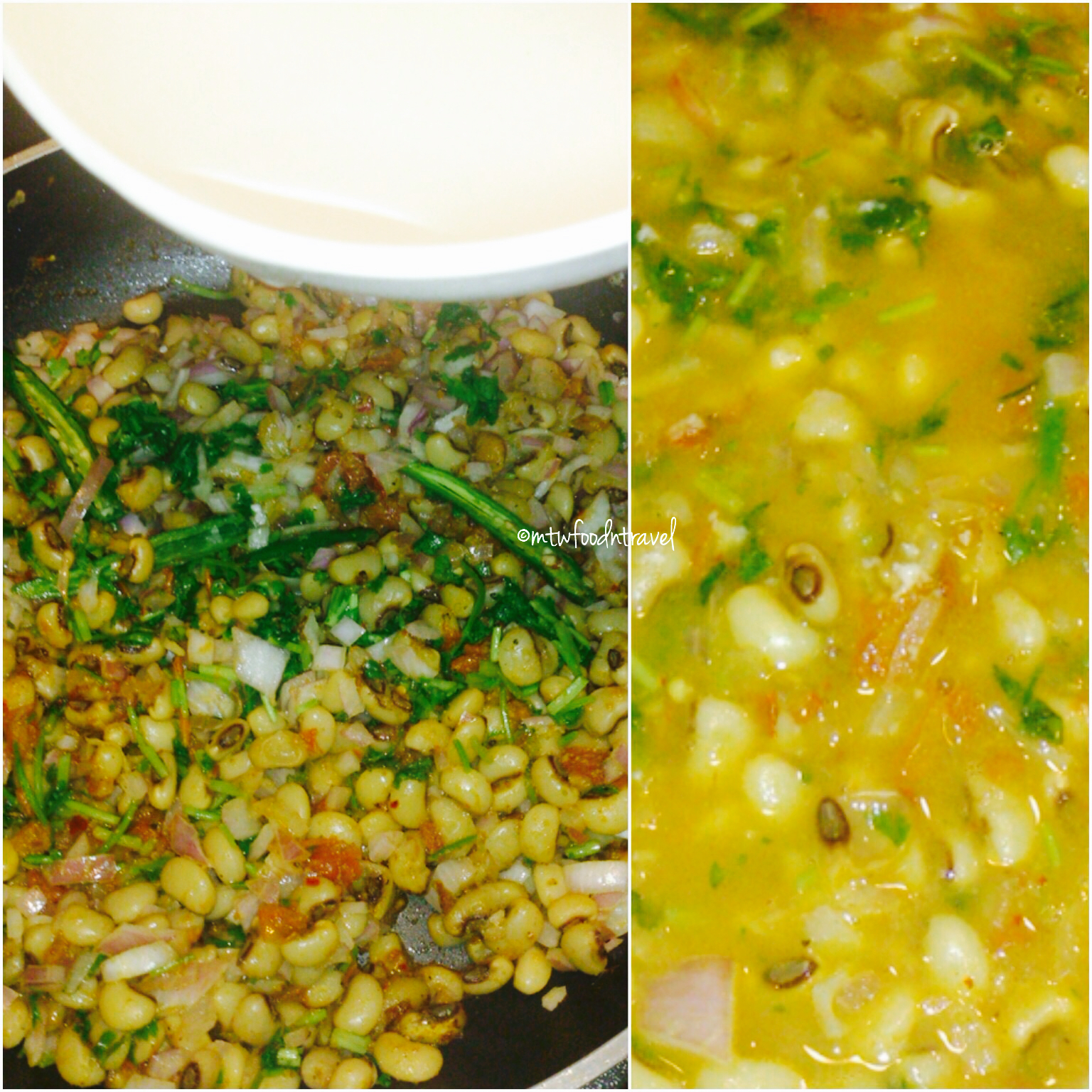 1) Wash 1Cup of Black Eyed Beans in Luke Warm water and soak it either overnight or at least for a couple of hours. Drain the water and pour fresh Luke warm water covering the Black Eyed Beans and cook them till they smash with a press of a finger.